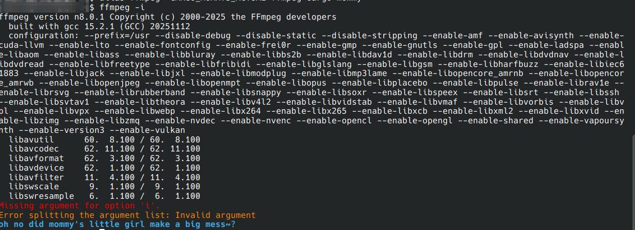 @aperture@snug.moe @thermia@sk.girlthi.ng i have attached it to ffmpeg. now to change what it says. gonna figure out how to do that