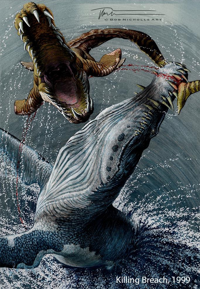Okay, that's not a thing, but here is an old acrylic painting from 1999 (26 years old!). It depicts a Liopleurodon breaching with an unfortunate Metriorhynchus in its jaws. It was commissioned for a TV series that was never made.