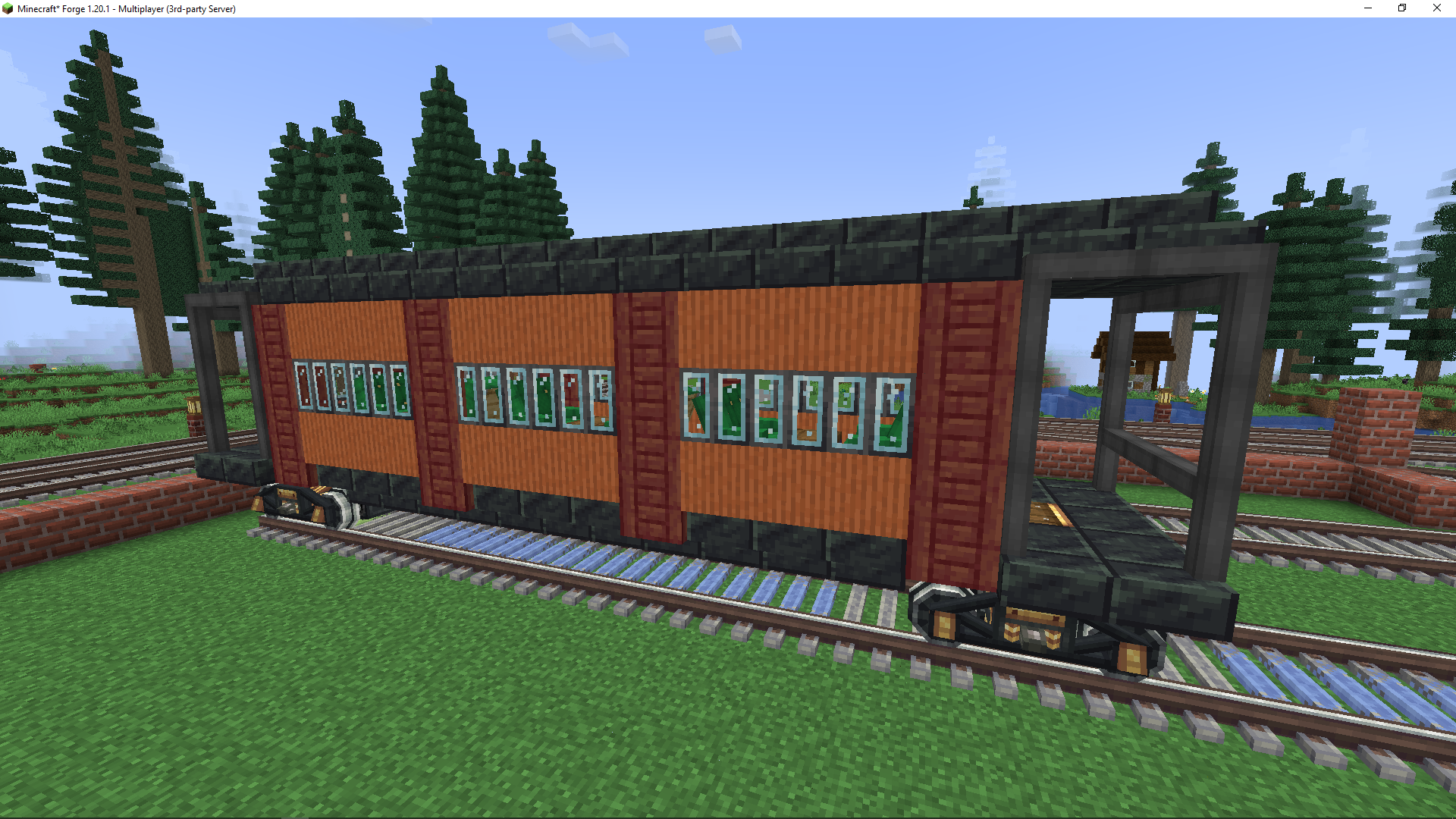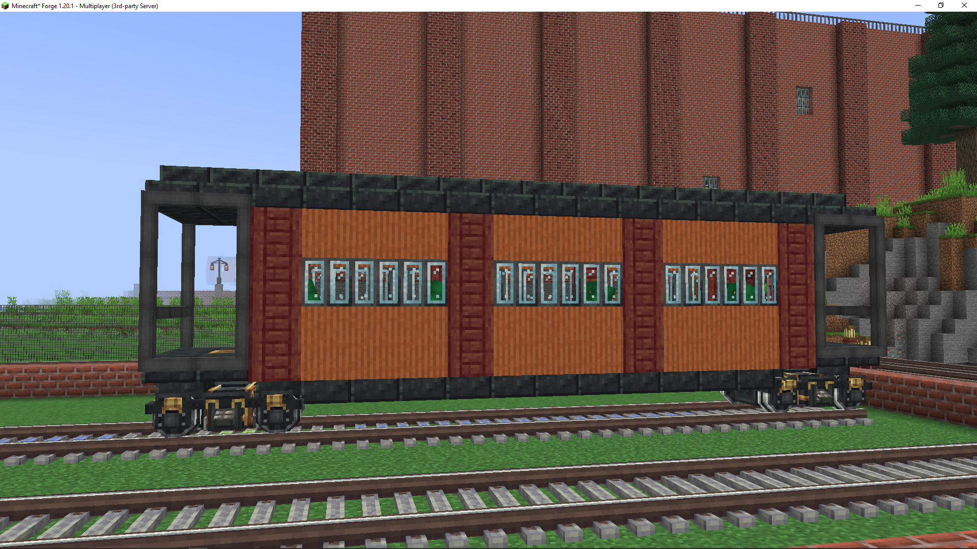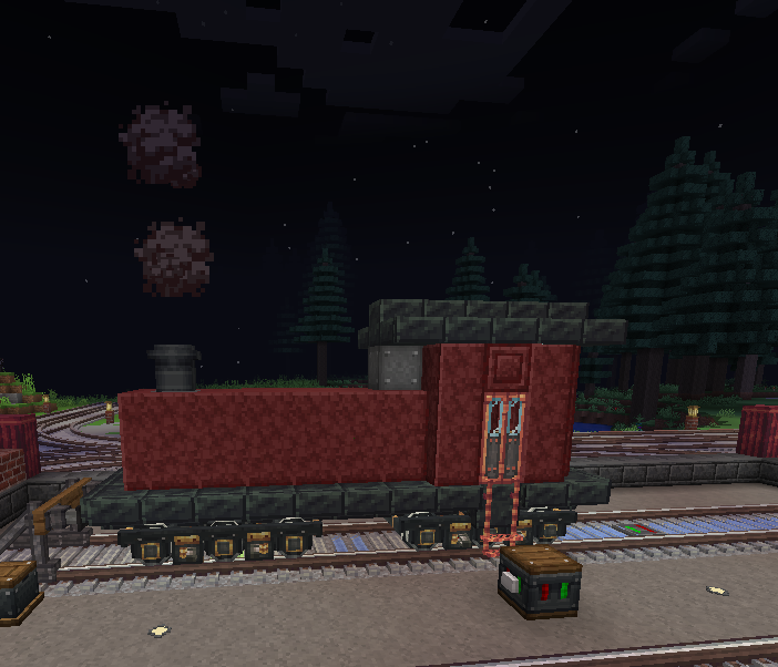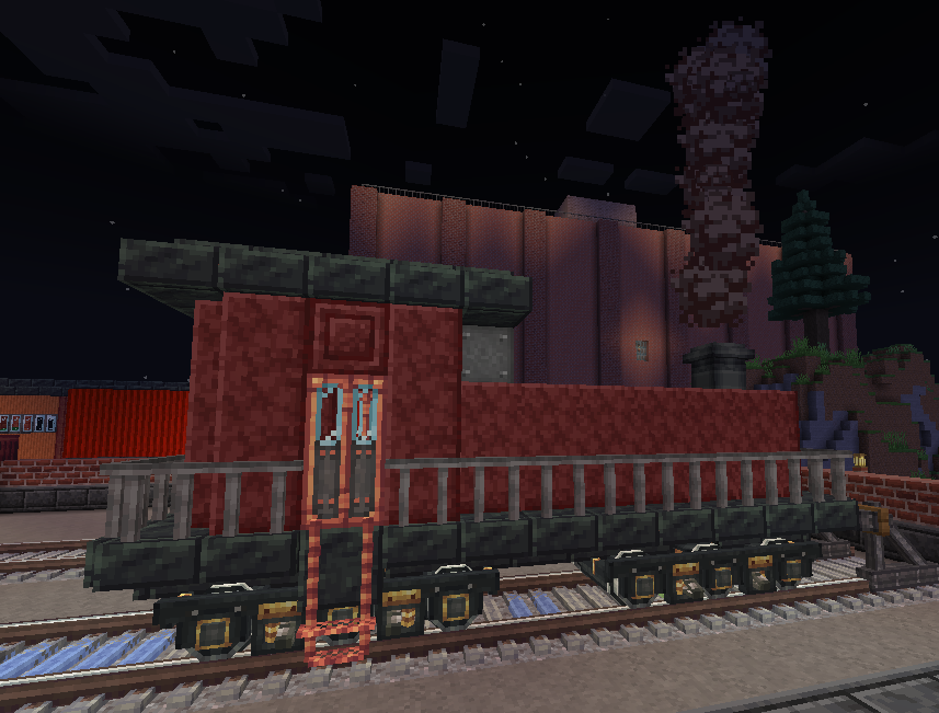 not sure if I like this with or without the railing on the outside. I intended for this to be a switcher locomotive but atp it's just. generic locomotive. I don't want to scrap it since it's nice but the railing blocks act weird when you disassemble it (they have the same block state as when they were assembled and can rotate which is real annoyinh