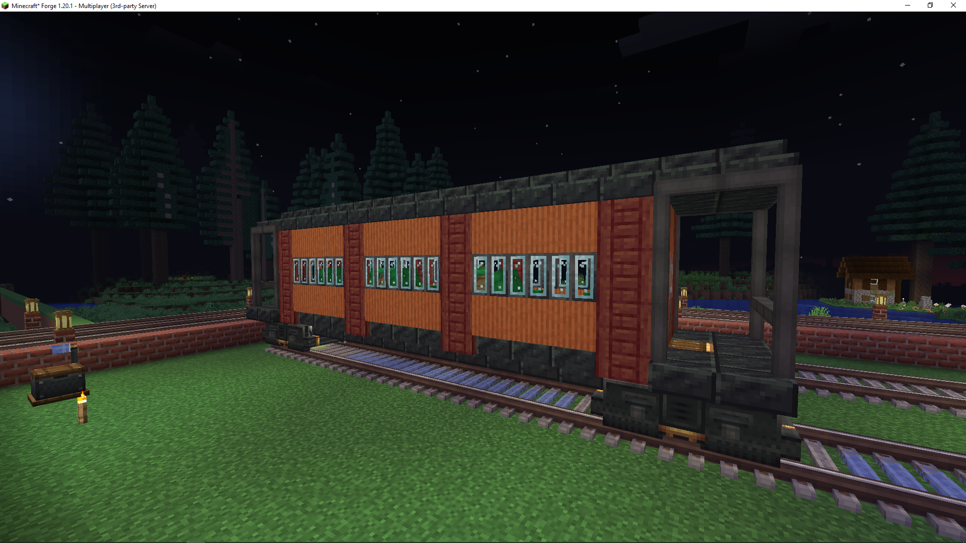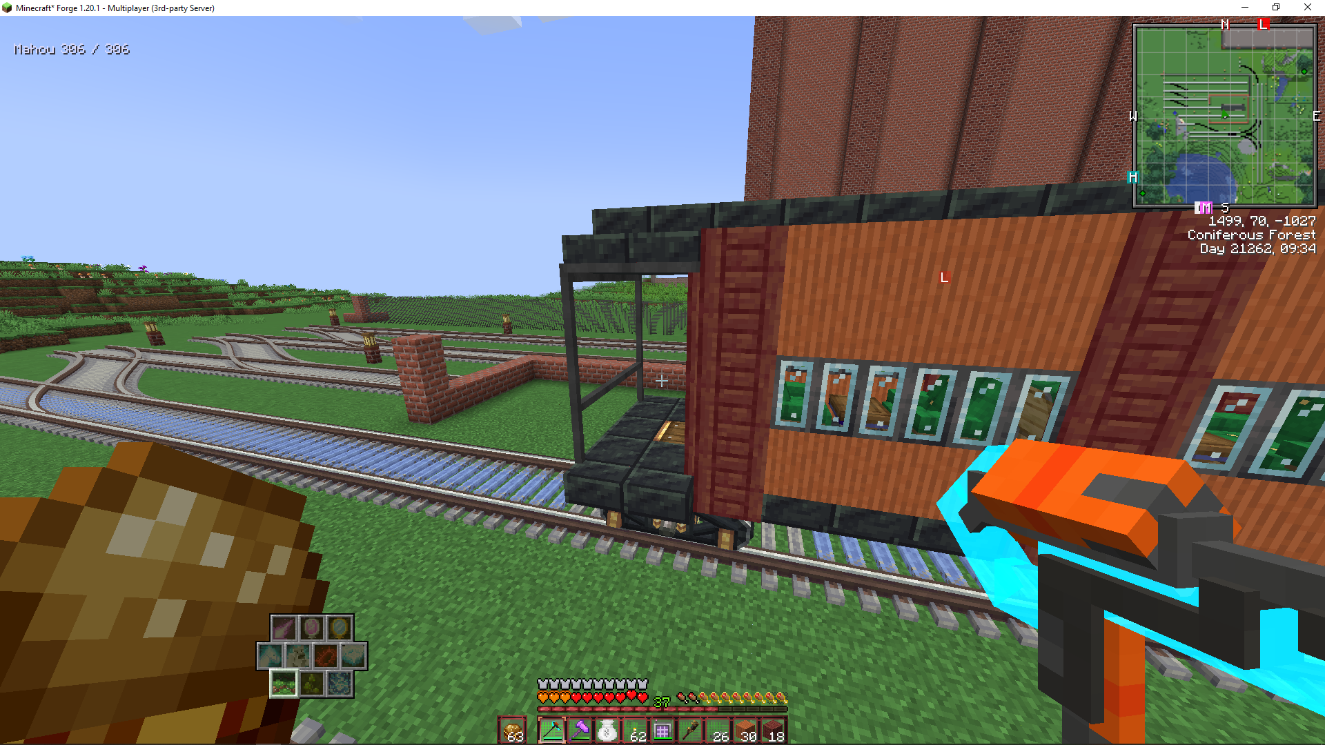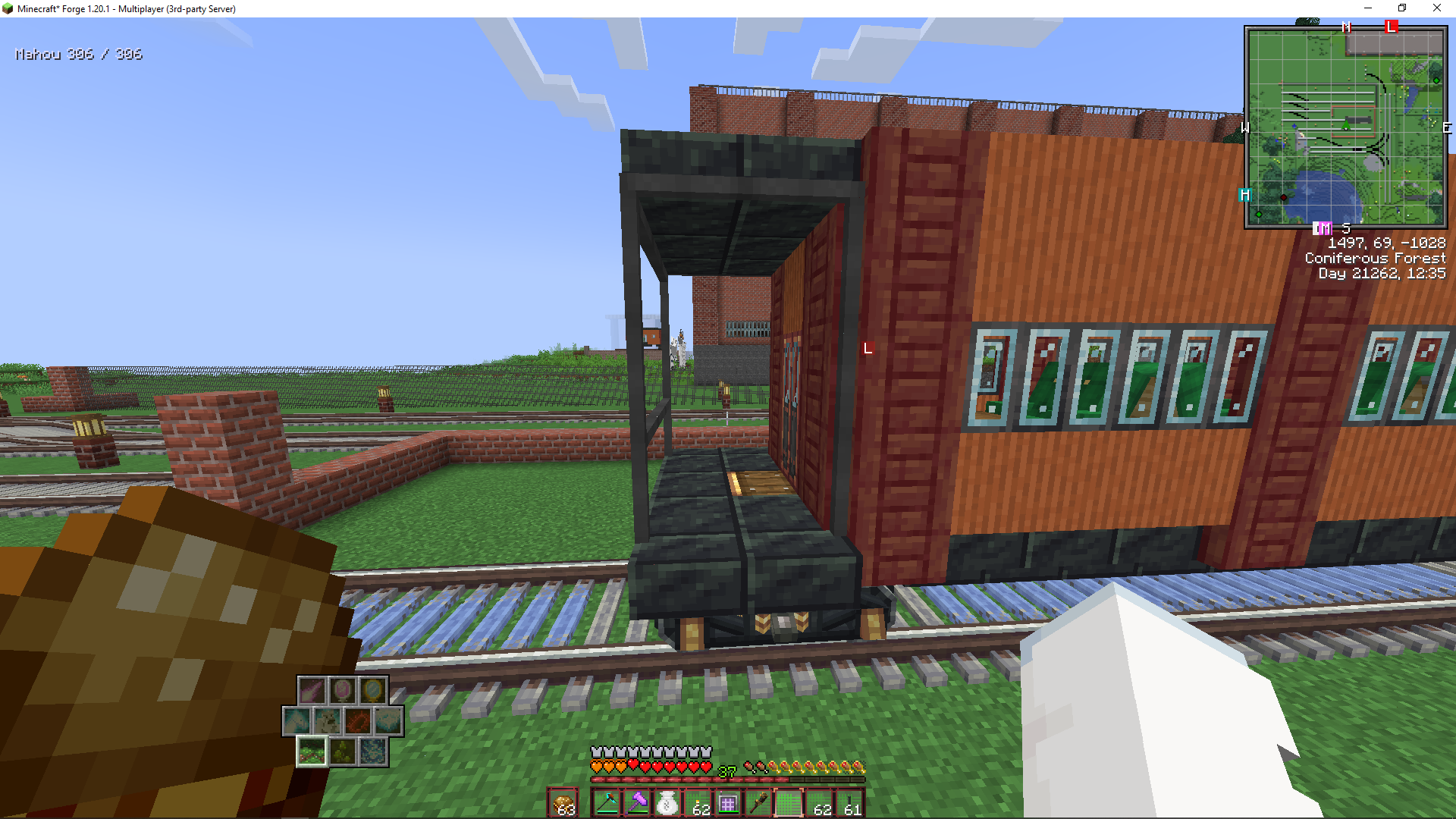 not sure if I like this with or without the railing on the outside. I intended for this to be a switcher locomotive but atp it's just. generic locomotive. I don't want to scrap it since it's nice but the railing blocks act weird when you disassemble it (they have the same block state as when they were assembled and can rotate which is real annoyinh